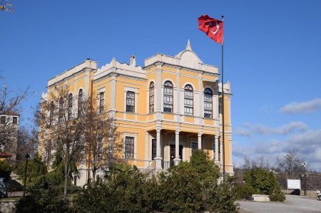 The interior decoration of the mosque is reminiscent of Central European Rococo. A library also belongs to the adjoining building complex. Between the two mosques stands the large building of the hammam, the Turkish bath, with several domes crowning the roof. There is also the Dağdelen Mosque (also from the 18th century) and the Kalpak or Lütfiye Mosque, which was built on an arch above the Safranbolu River and was only built in the 19th century. A little above the lower town is a classicist palace from the 19th century, which was formerly the town hall, but now houses the town museum. From here there is a beautiful panorama of the historical centre.