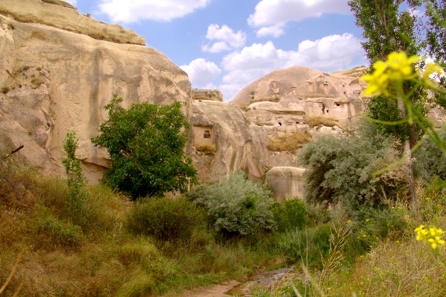 If you keep going through the alleyway after passing the Karakuş facilities through the Mustafapaşa Road at the west of Ürgüp, after a while you can reach Üzengi Stream which runs in parallel to the valley and where the water level isn’t so high. The valley also has an entrance from the direction of Ortahisar.