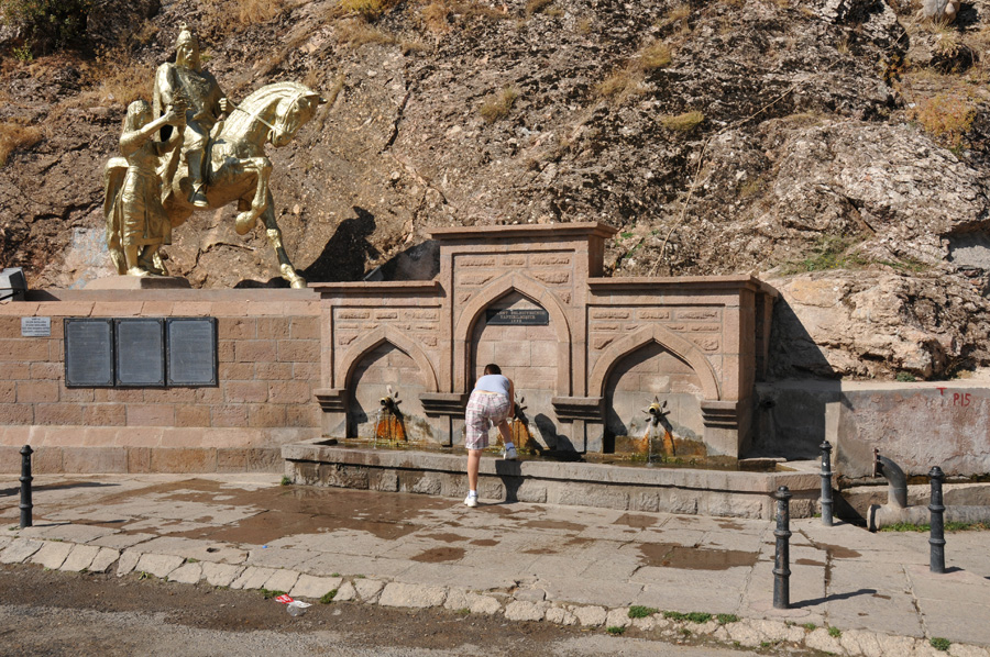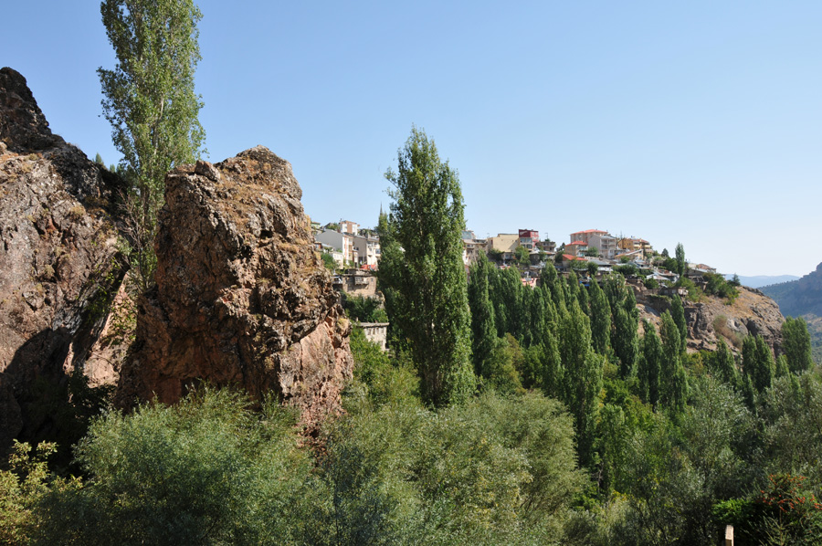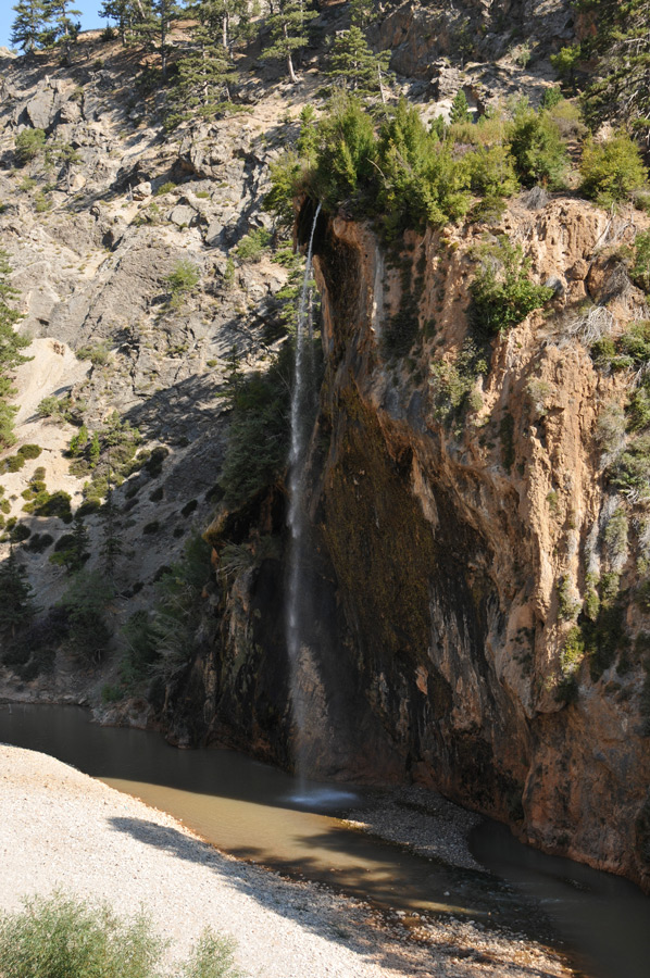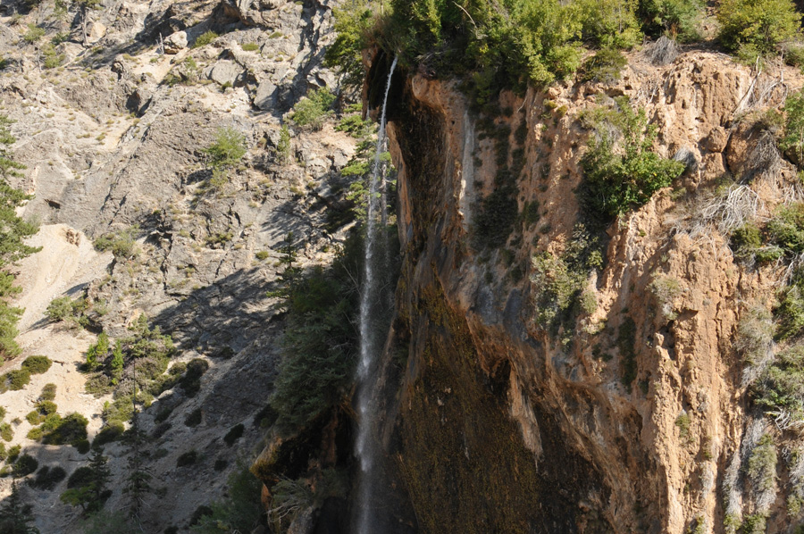 Shortly before we hit the road 340, we come across a waterfall on the right-hand side, which we hadn't noticed on our last tour. Probably just active after the snow has melted, the water probably falls down around 50 meters here. A little later we get to Hadim via Taskent and further towards Bozkir. In Bozkir we take the turnoff towards Karaman until just before the village of Aydinkisla, where you can already see some ruins on the mountain slope on the right (from Mahmutlar about 160 kilometers through scenic passages in the high mountains).