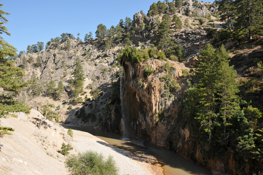The view from Alacami back into the Dim Cayi valley is too impressive and the road along the overhangs of the rocks also offers a little adventure. At Seyhler we cross the Gevne Cayi river, which is still flooding, which has its source on one of the highest mountains in this region, the Geyik Dagi (3002 metres) and flows into the Gezende reservoir just behind Ermenek. From here the water flows through the Ermenek Cayi directly into the Göksu Nehri, which forms a huge delta near Silifke with an impressive bird population.