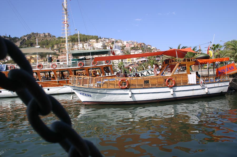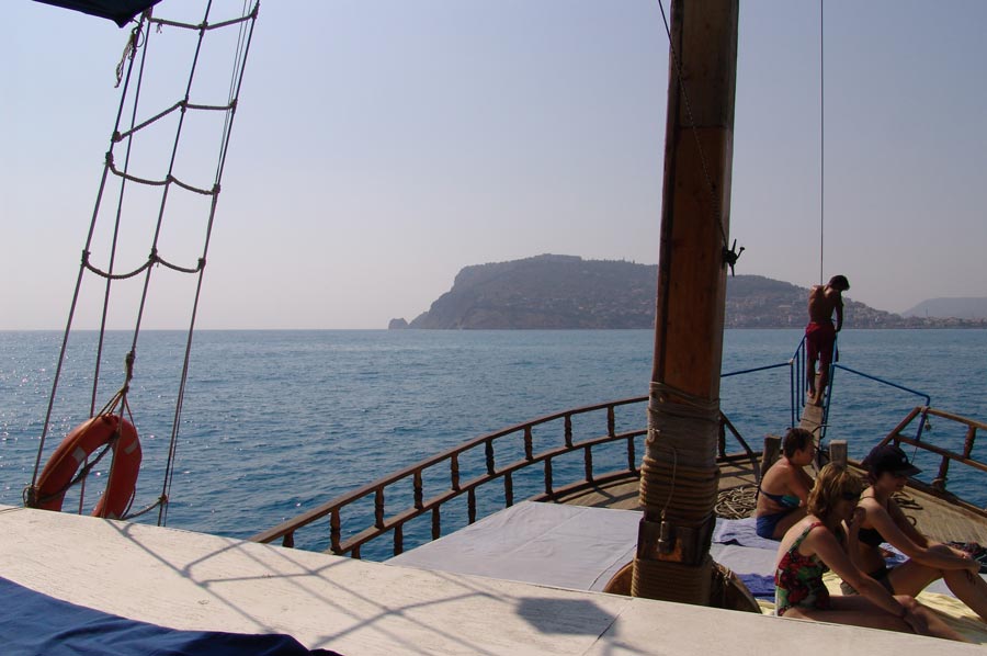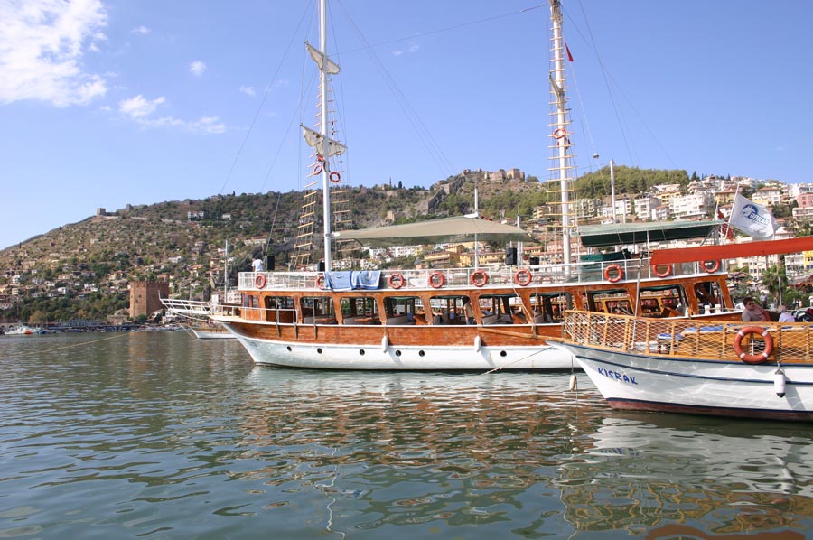 If you start at the harbour in Alanya the trip takes you round the Castle Mountain. This is a daily trip to the Red Tower, the ancient Ship Yard, the "Love Cave" (you should take the chance to swim into that cave), the Cave of Cleopatra then along Cleopatra Beach to the new harbour. If you have enjoyed this boat trip, then you should enquire about a longer one along the coast to Gazipasa. There are lots of bays only reachable by boat. They are beautiful places for swimming and diving.