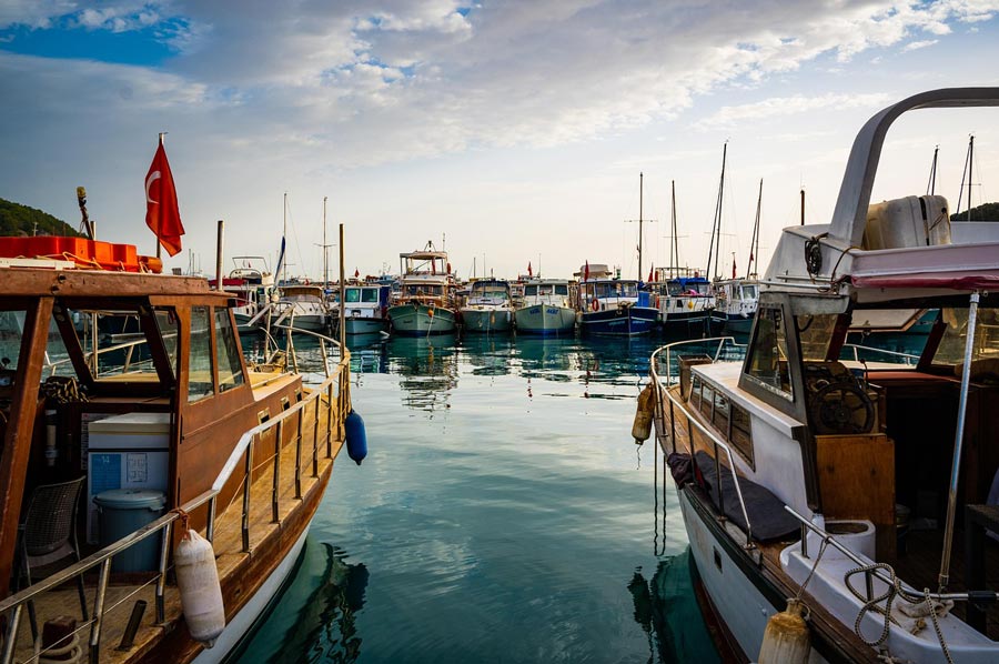 Instead you will find different sized wooden boats and ships which can be rented out for a few hours or even a few days by customers who want to explore the harbour area or take a trip to the sights close by. Daily trips are offered along the coast, quite often with a small barbecue and some time for swimming. This is a good way to see the area if you are visiting the Turkish Riviera for the first time.