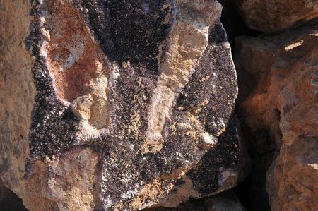 We found a large pile of rocks with the shimmer of crystal reflecting sunlight on its surface, visible from far. Next to a small wooden hut for shelter, we found two people, one of whom spoke to us directly in German.