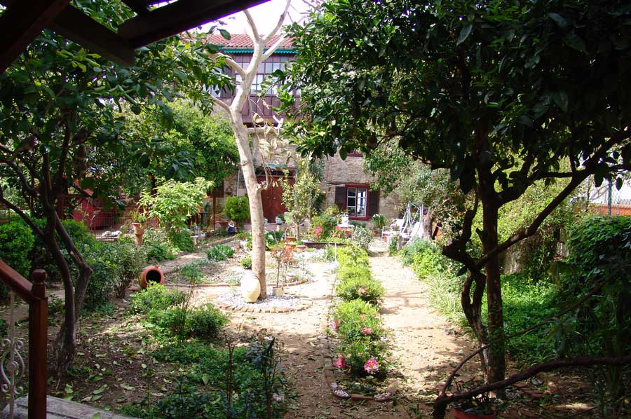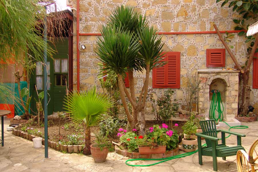 It measures 40 x 30 m and consists of four larger halls and three smaller rooms, all of which are arched, as well as two sports fields. Northeast of it stands a vaulted Byzantine house.