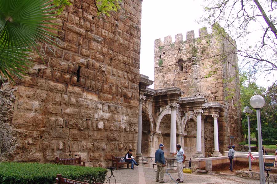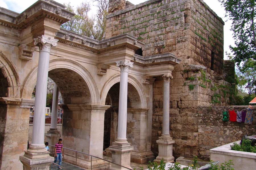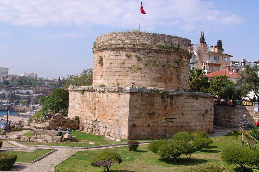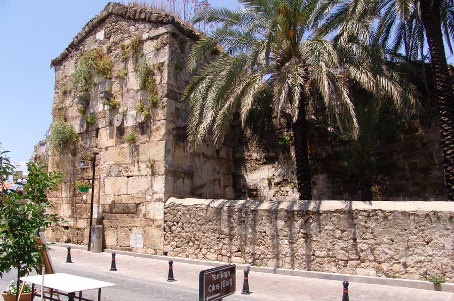 The oldest section of Antalya covering the antique city area is known as Kaleiçi, meaning the “Inner Castle”; the city walls in the shape of a horse shoe can still be seen, although many sections of it are vanished or taken away. Constructed in 2nd century AD and accepted to be the shared work of Hellenistic, Roman, Byzantian, Seljukian and Ottoman eras, antique walls surrounding the port and inner castle which were adorned with many watch towers. Additional to such constructions, walls separating various sections of the antique settlement from each other, so that different religions got their own quarters.