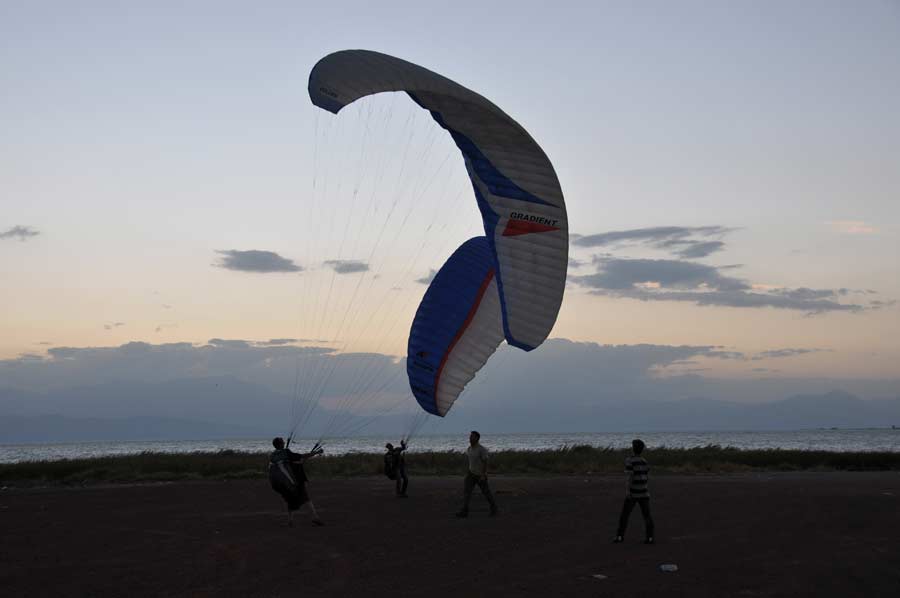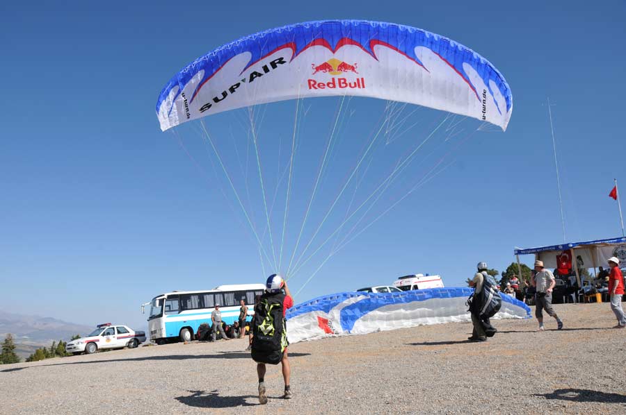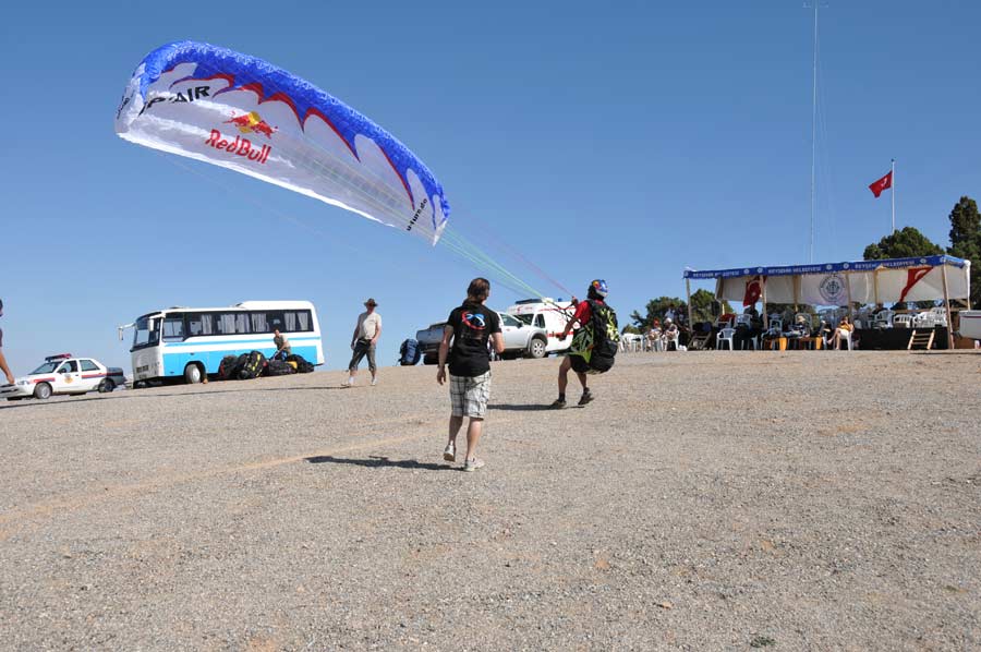 We made our way to “Yaka” picnic grounds, which had been arranged by the Council of Beyşehir as take off point. Following a welcoming talk by the mayor İzzet Taşçı, the group leader and a few XC participants’ preparations began. The council had arranged a water tank (an important point for pilots; they need to carry dead freight in case of change of weather), food, drinks and music fort he participants.