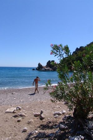 The pebble beach is natural, surrounded by high cliffs and crystal-clear water – perfect for unwinding.