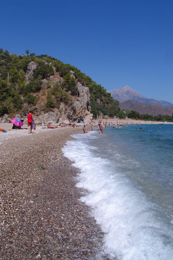 With increasing sun, it became increasingly warmer hourly. So we were really happy to reach at the beach. Approximately 3 kilometers wide, the beach widens until Çıralı, beautiful mountain panorama, the highlight is the Tahtali mountain with its cable car and the strong green vegetation in the background, azure like colored water of excellent quality waiting for us. Hardly no beach chairs or umbrellas disturbed the idyll, but just a Mecca for alternative travelers without any 5 star luxury, so it became popularity within the backpackers. And same with us. We will be back again.