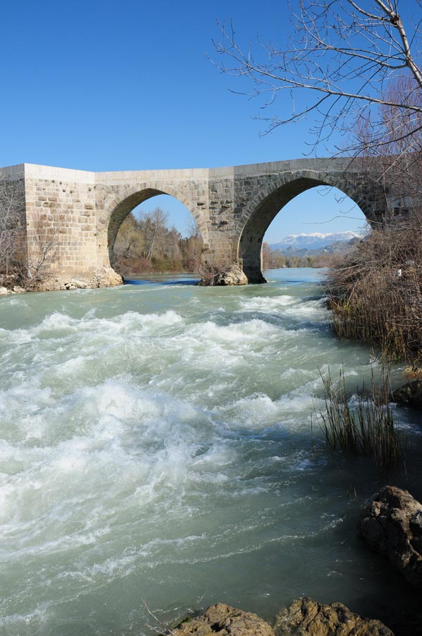 Eurymedon Bridge – 250 perforated stones from the Aspendos pressurized water system were used in its construction.