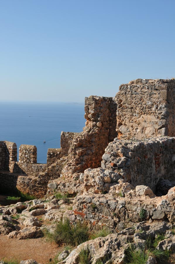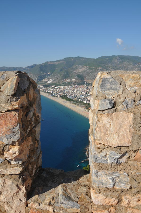 From these walls, you have a wonderful view of Alanya and the sea. The sea sparkles as the waves crash against the rocks on which the wall stands. Here, the sea appears turquoise blue.