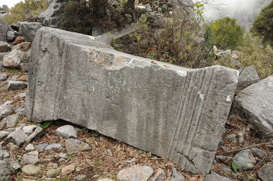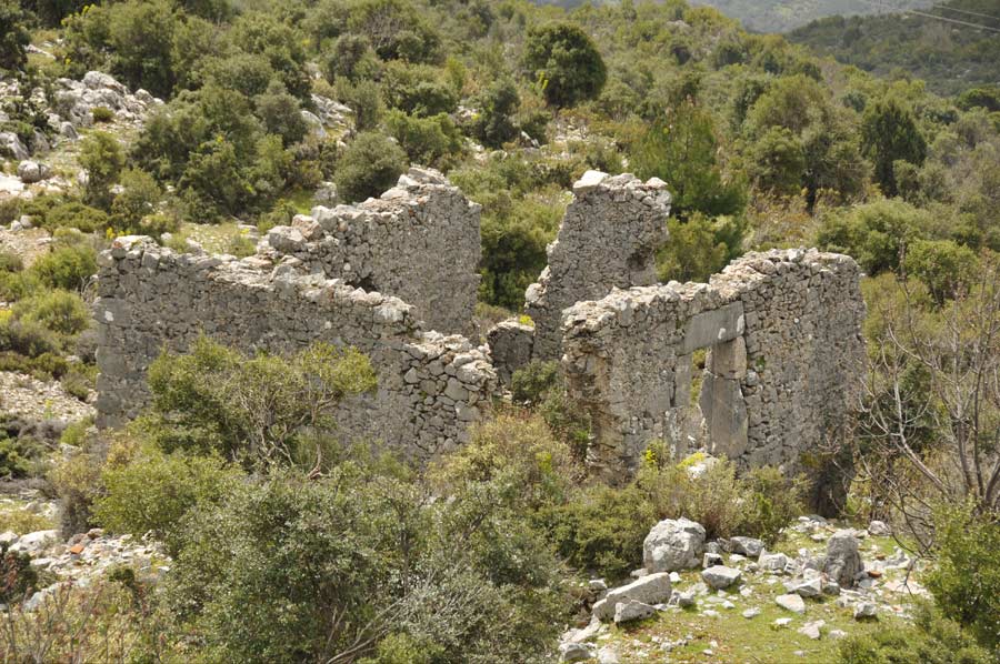 Take the coast road past Mahmutlar and past the sign to Syedra. Then turn left (sign) whereupon you reach a roundabout with a statue of a man with turban. Take the second road in the roundabout (west) and then first time to the right (to the north) in the direction of Gözuküçüklü. After 11 km you get to a sign with Laertes on it, where you can park the car. If you prefer to drive , go on in the direction of the sign to the left along a stony road, where careful driving is recommended. Finally you get to a path to the north west of the ruins. The terrain is steep and uneven, and the ruins are generally in a bad condition.
