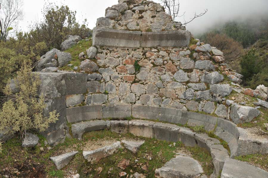 Immediately to the west of the odeon on a hill top stands an Apollo Temple, and south of it a Zeus Temple in miserable condition. They were the main gods along with the emperor and the two gods are often depicted on the coins of the city. Further up is the acropolis and the necropolis is south west of it. A small stadium is found on the flat area to the west and next to it are the remains of a church with apse and red and blue marks from murals.