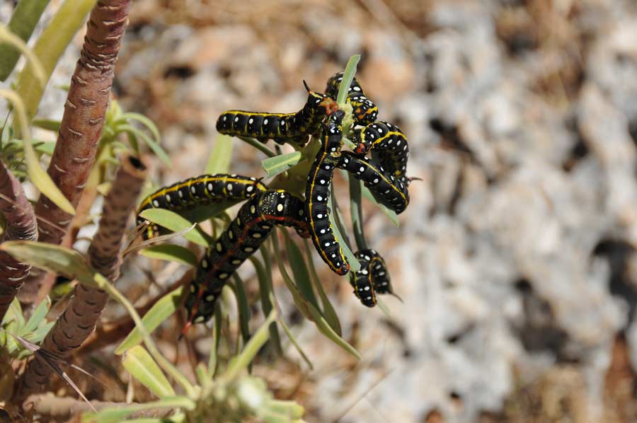 So the backpack was laced, the water bottle filled and off we went. Still in place at the mosque of Yavu, passers alerted us to the macadam road, which we, however, rejected for their lack of understanding. As usual Wolfgang cared for interesting and entertaining stories about colonizing Lycia, about the changing Hellenistic and Roman rulers and their impact on the founding of cities in the region. No wonder, then, that the strenuous climb up to the ruins passed like a flight. Along the way there were one or two meetings with the local wildlife, especially some chains of procession spinners and some voracious but colorful caterpillars. Little later an almost closed, very deep cistern had demanded our attention and thus caused a disruption of our hike.