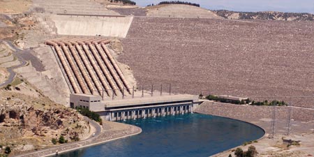 The Atatürk dam (Turkish Atatürk Barajı) on the Euphrates is the first finished, most important and largest of the 22 dams of the Southeast Anatolia project GAP (Güneydogu Anadolu Projesi) in Turkey.