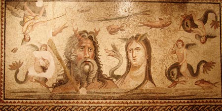 A few kilometres north of the newly built Birecik dam, two larger settlements faced each other on the banks of the Euphrates in ancient times: Apamea on the left and Seleukeia / Zeugma on the right bank.