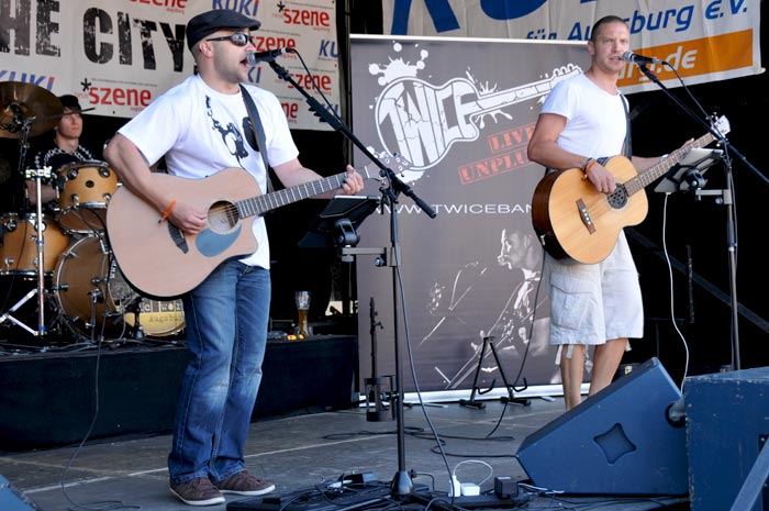 Rock müzikten Hip Hop ve pop müziğe, eski klasiklerden 90'lara kadar geniş repertuvarlarını akustik gitar, ukulele (19. yüzyılda Hawai'de geliştirilen dört telli gitar benzeri bir enstrüman), bateri, cajon perküsyon, mızıka ve iki vokal eşliğinde sunan Twice Band günün açılışını yapıyor.