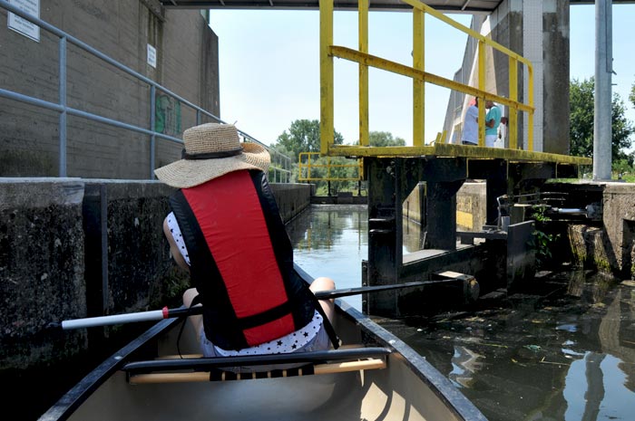 Kırılmadığı sürece batmayan kanoların son derece az rastlanan ters dönme riski olduğundan dolayı can yeleği giymeniz gerekiyor. Öncelikle eski Main nehri seviyesine inmek için gemi kaldıracı ya da tekne asansörünün kaldıraç havuzuna giriyoruz. Biraz sonra 4 m kadar alt seviyeye eski Main nehrine inmiş olacağız.
