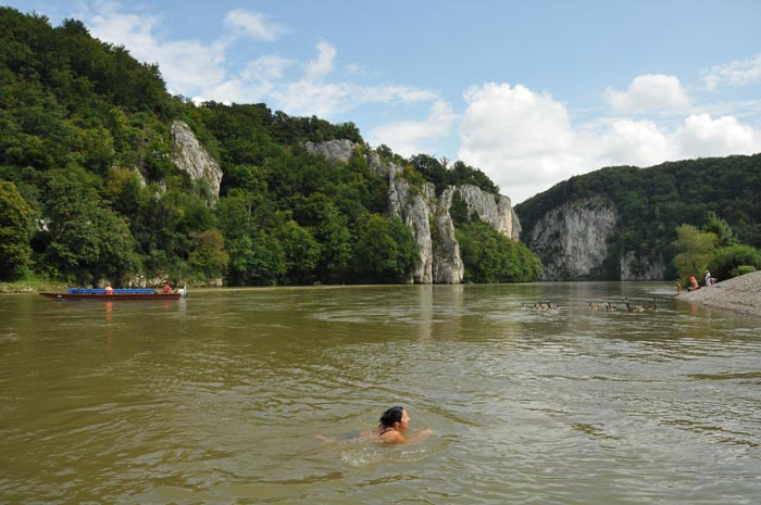 Kelheim kasabasına doğru dönüşe geçeceğiz ve tabiki Tuna Boğazını bu defa nehir yolu ile aşmak istiyoruz. Hemen biletlerimizi alıyor ve bizi Kelheim'a götürecek yolcu gemisini beklemeye başlıyoruz. Ticari ulaşım Main-Tuna kanalından yapıldığından dolayı bu kanyondan sadece yolcu gemileri ve gezi tekneleri geçiyor.