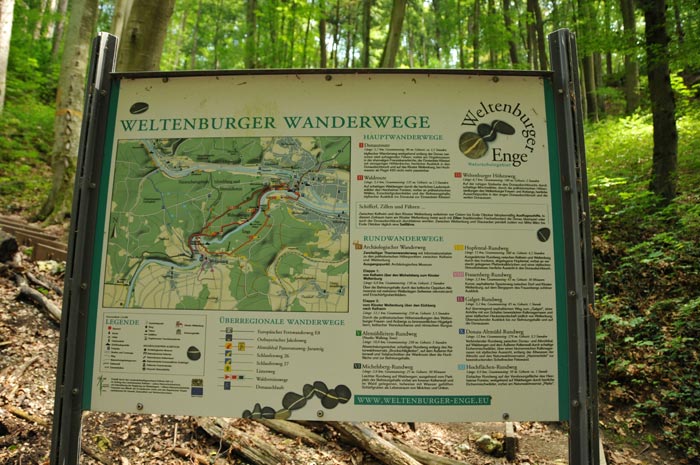Yalnızca Weltenburger Enge bölgesindeki parkurlar değil aynı zamanda uzun mesafe yürüyüş parkurları hakkında da oldukça net bir şekilde parkur bilgileri sunan tabelalara yürüyüşümüz boyunca farklı noktalarda rastlıyoruz.