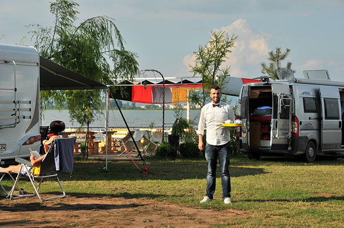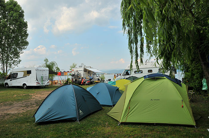 Bir sabah uyandığımızda hemen yanımızda yan yana beş çadır kurulmuş görünce meraklanıyoruz tabiki ve hemen komşularımız ile diyaloğa girişiyoruz. Macaristan’dan yola çıkan kampçılar arasında baba ve oğul ile arkadaşlar yer alıyor. Ohrid Gölü kıyılarını araç ile gezen arkadaş grubu üç gece konakladılar ve çok eğlenceliydiler.