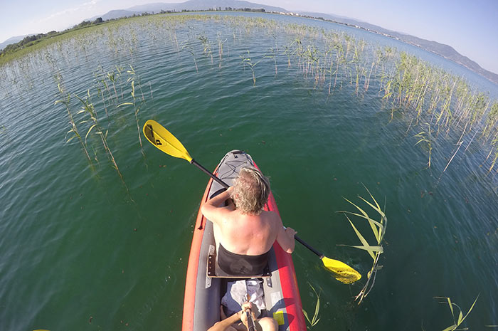 En azından kano ile gölde gezinti yapma fırsatımız oldu ve hava ısınınca ben de kendimi Ohrid gölünün berrak sularına bıraktım. Göl kıyısı gece ayrı güzel gündüz ayrı güzel. Fotoğraf makinasını elimden bırakırken zorlanıyorum desem yeri var.