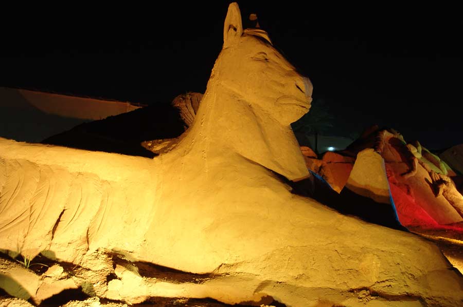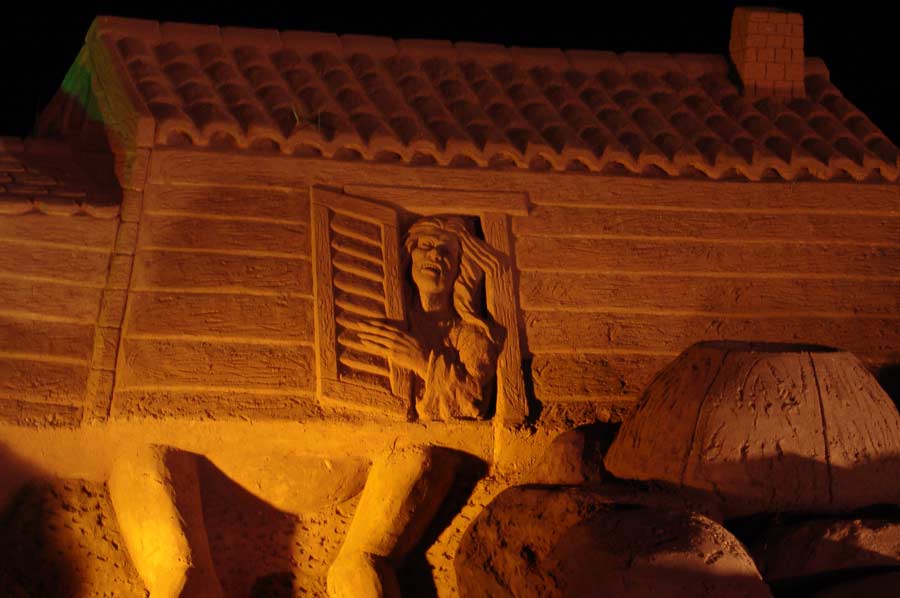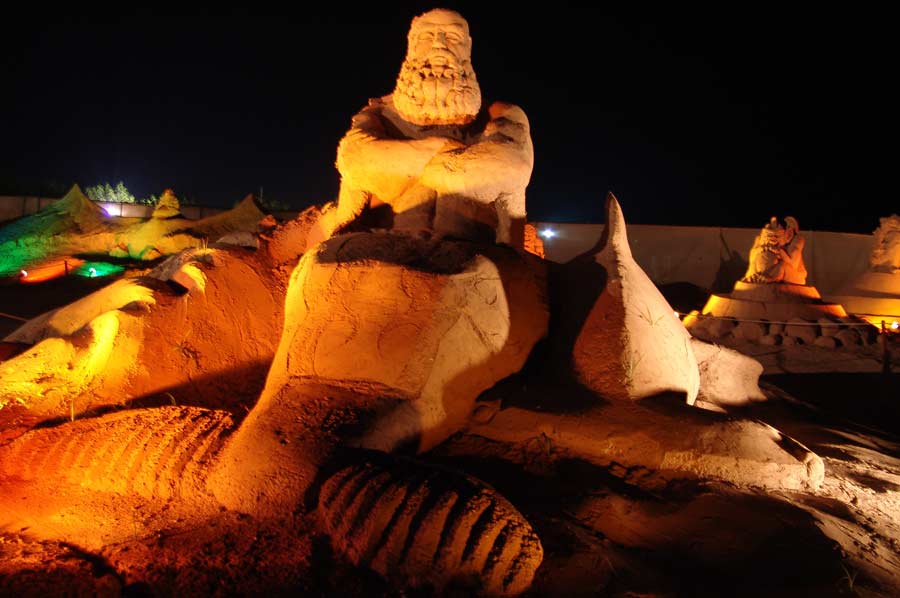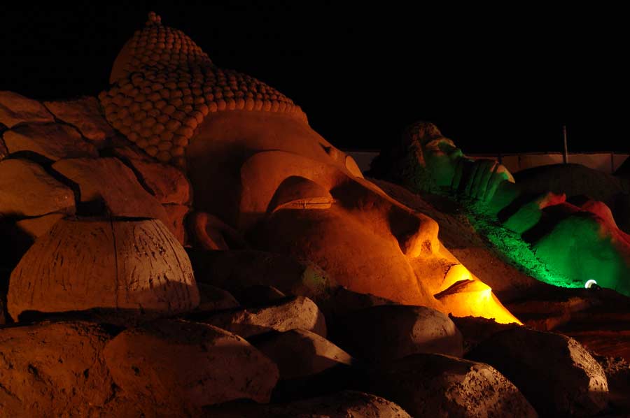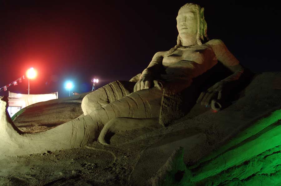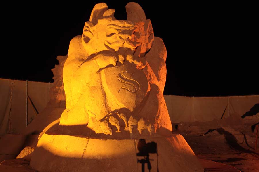 Toplam 10 ülkeden gelen 40 sanatçının meydana getirdiği bu kumdan heykel sergisi sonbaharın sonuna kadar açık olacak. Tabii iklim koşullarına bağlı olarak. Burada sadece suyla birleştirilerek yoğunlaştırılmış olan özel bir nehir kumu (tanecikler daha köşeli olduğundan daha fazla biçimsel istikrar sunuyor) kullanılmış ve gerçek bir el zanaatkarlığıyla sanatçılar tarafından mitolojik kumdan heykellere dönüştürülmüştür. Rüzgarın ve özellikle de yağmurun sergiye zamanından önce son verebilecek olduğu gayet açık görünüyor.