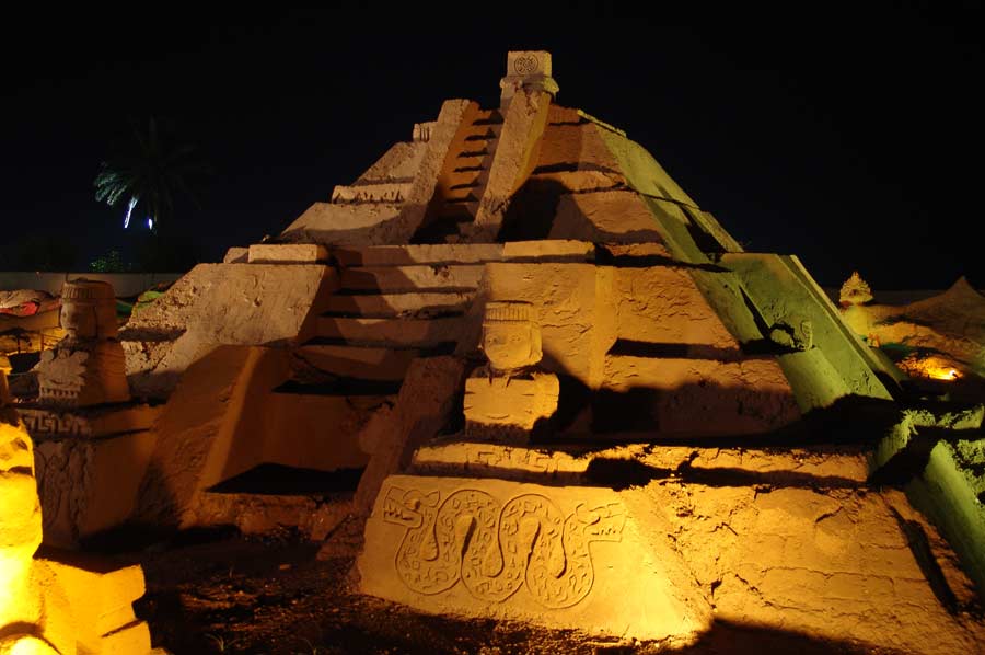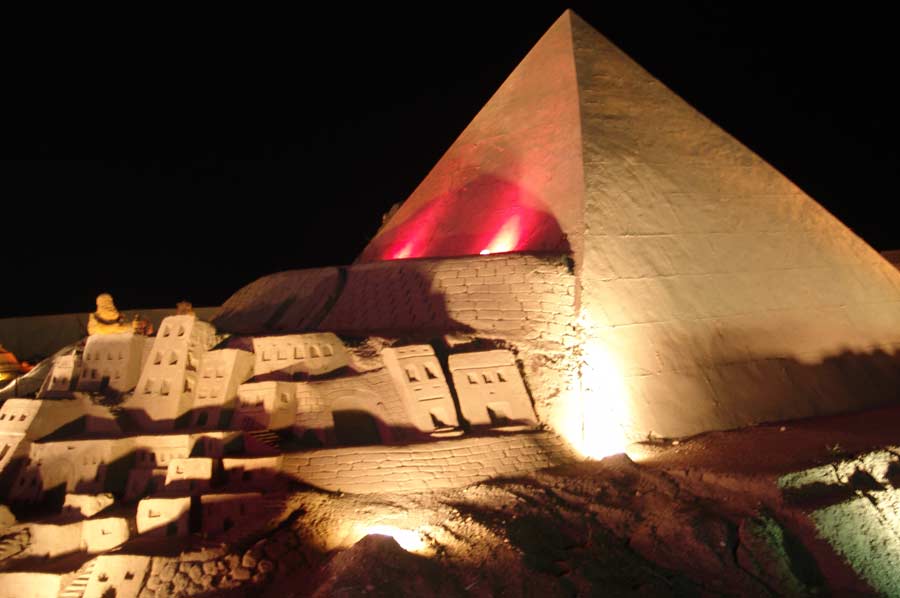 Öncelikle çalışmaların başlangıcında, son yıldan kalma figürler büyük iş makineleriyle tesviye edilmiş. Sonra sanatçıların talimatları doğrultusunda kum yığınları oluşturulmuş ve iş makineleriyle ilk sıklaştırma işlemleri gerçekleştirilmiş. Önceden hazırlanmış olan kalıplar bunun akabinde kum yığınlarına oturtulmuş, kumla doldurulmuş ve sıkıştırılmış. Asıl biçimlendirme çalışmalarıysa bunun ardından, yukarıdan aşağıya doğru ilerleme sağlanarak icra edilmiş. Sanatçıların arzusu doğrultusunda, Grek ve Roma tanrılarından oluşan mitoloji dünyasına ait kumdan heykeller bu şekilde, adım adım meydana getirilmiş. Ama Mısır ve Hint tanrıları da unutulmamış. İster Zeus, Pegasus, Phoenix, isterse de deniz kızı olsun, heykellerin ayrıntılarındaki incelik hayret vericidir. Üstelik çok gerçekçidir. Toplam 7500 ton kumun işlendiği düşünüldüğünde, hayranlık uyandırıcıdır.
