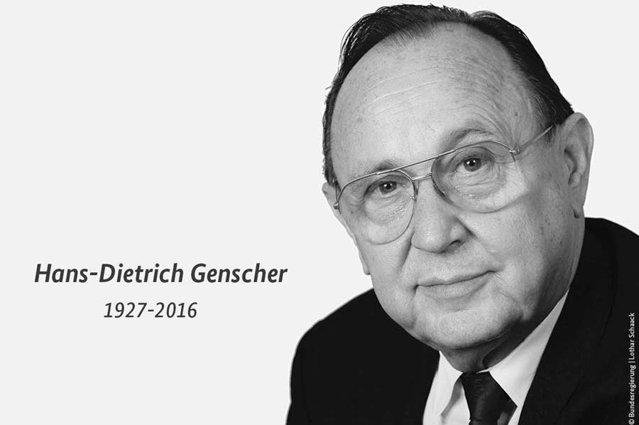 Almanya Eski Dışişleri Bakanı Hans-Dietrich Genscher geçtiğimiz perşembe günü 31.03.2016 tarihinde vefat etti. Kendisinin anısına Antalya Alman Konsolosluğunda taziye defteri imzaya açılacaktır.