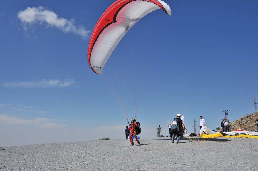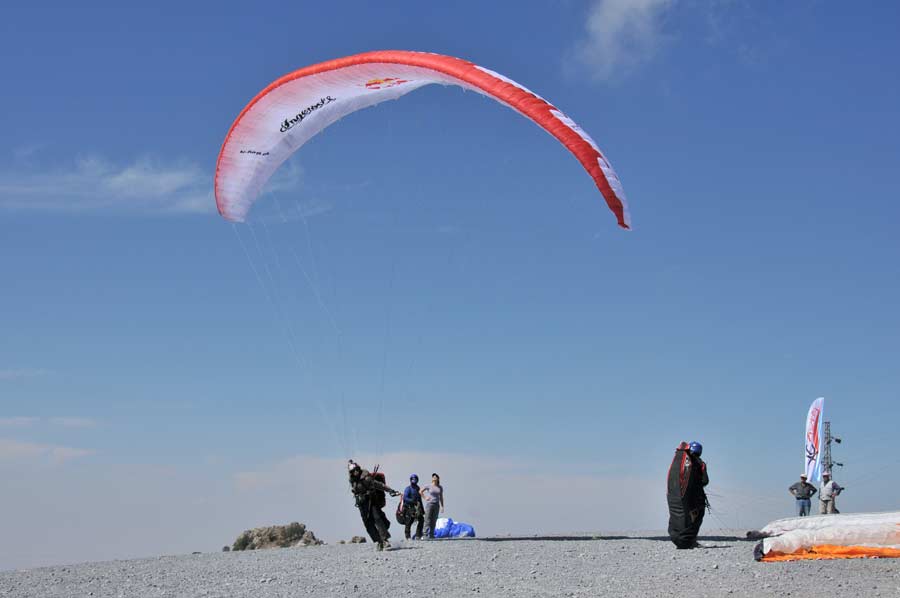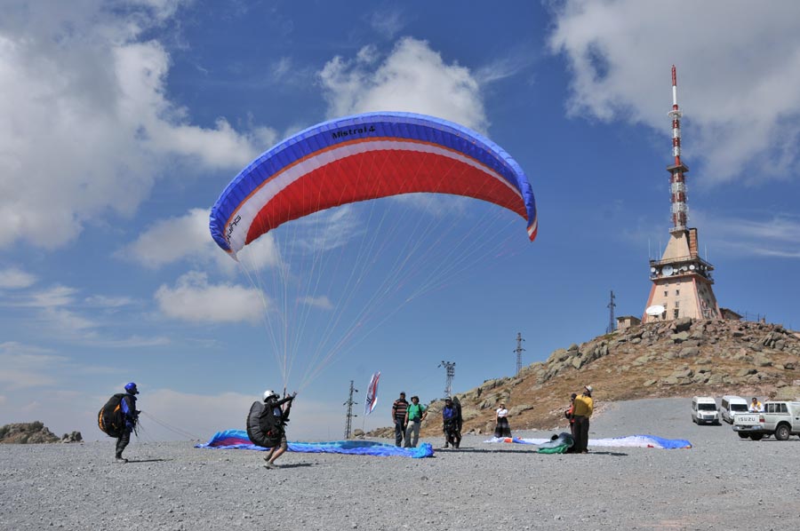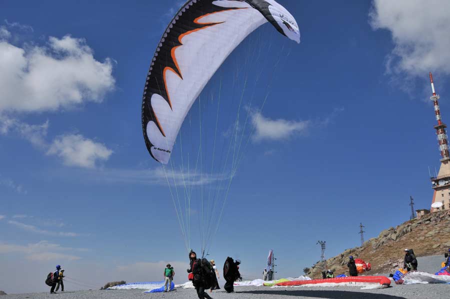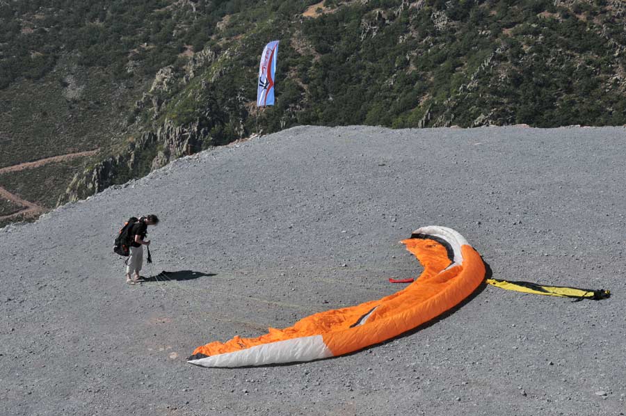 Henüz kalkış esnasında bile, pilotların farklı yetenekleri ve aldıkları eğitimler, konunun yabancısı olan bizler açısından belirgin bir şekilde göze görünüyordu. Birisi koşarak ve uçuruma doğru atlayarak start yaparken, halihazırdaki dünya şampiyonu Pal Takats paraşütüne rüzgarın dolmasını bekliyor ve sonra bir helikopter gibi dikey olarak yükseliyordu ve nihayet zirvenin düzlüğünde birtakım becerikli yönlendirici hareketler yaparak, yatay uçuşa başlıyordu. Muhteşem bir görüntüydü. Oradan geçen bir kartal da herhalde aynı şeyi düşünüyordu ki bu kartal da Karadağ'ın, ısındıkları için yukarıya doğru yükselen havalarından (termiklerden) yararlanmasını biliyordu. Bugünkü galip, 91,7 kilometrelik bir mesafe kat edip Kızılkaya yakınlarındaki bir ovaya kadar uçabilen Fransız pilot Fabrice Sibille oldu.