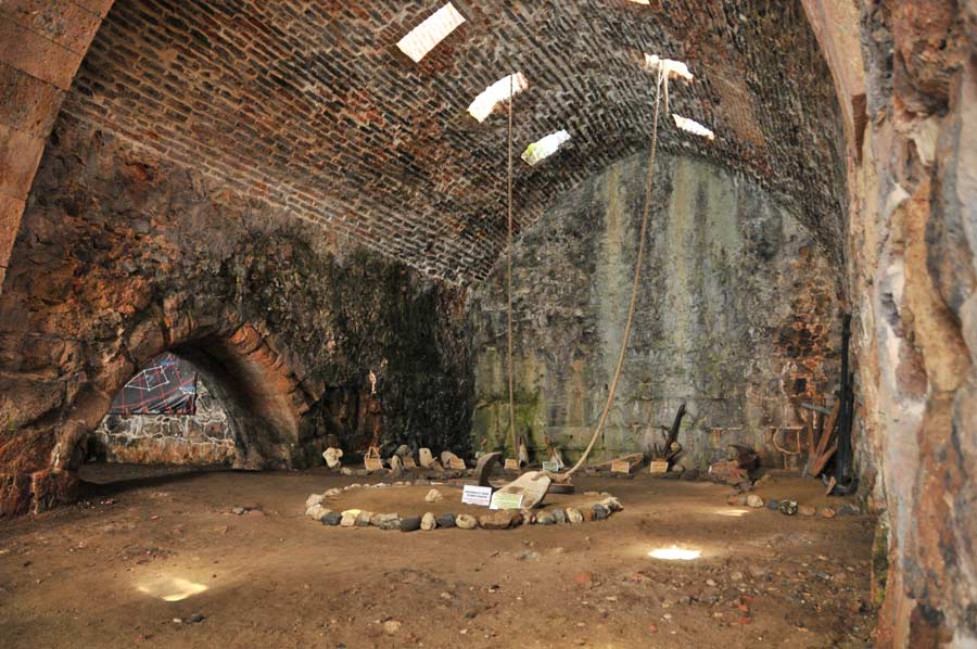 Odalar sivri bölmelerle birbirinden ayrılmıştır. Çok sert bir maddeden yapılmış olan duvarlar odaları birbirinden ayırmaktadır. Bu duvarlarda ayrıca yakılmış kremitler kullanılmıştır. Bu alanların dış kısmı ışıklarla donatılmıştır. Bugün ise su yaklaşık 4 metre içeriye doğru girmektedir. Arka kısmı ise tamamen çakıl taşından yapılmıştır. Bu galeriye batıdaki limandan ulaşmak mümkündür.
