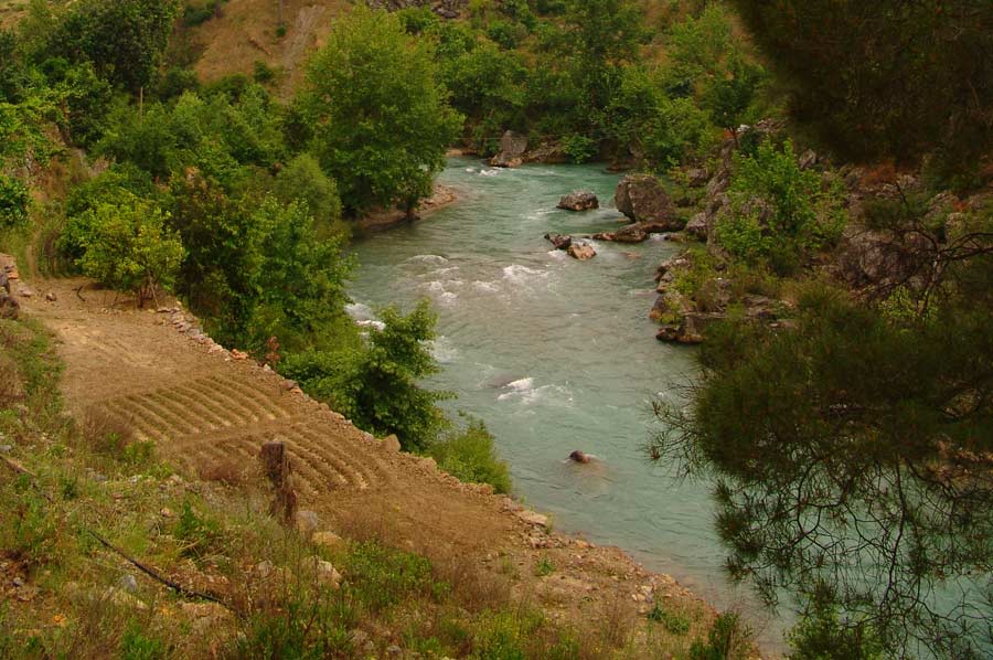 Gündoğmuş'taki levhalar biraz kafa karıştırıcı. Ancak Köprülü yönünde devam ediyoruz (35 km). Yine varyantlar üzerinden kat edilen başka iniş ve çıkışlardan sonra Çayırözü, Naragazi ve Ortaköy geçiliyor. Şelaleye ilişkin ilk bilgi levhaları ortaya çıkıyor. Ve gerçekten de: Dağın çok sayıdaki aralığından ve deliğinden fışkırarak çıkan etkileyici bir şelale, yaklaşık 40 metre kadar aşağıya iniyor! Kısa süre sonra şelalenin ayağındaki küçük tesise ulaşıyoruz. Gürültü giderek artıyor ve aşağıya inen su kütlelerinin sağa sola püsküren köpüklerinden giysilerimiz ıslanıyor. Ama yine de çok etkileyici bir yer Uçansu Şelalesi.