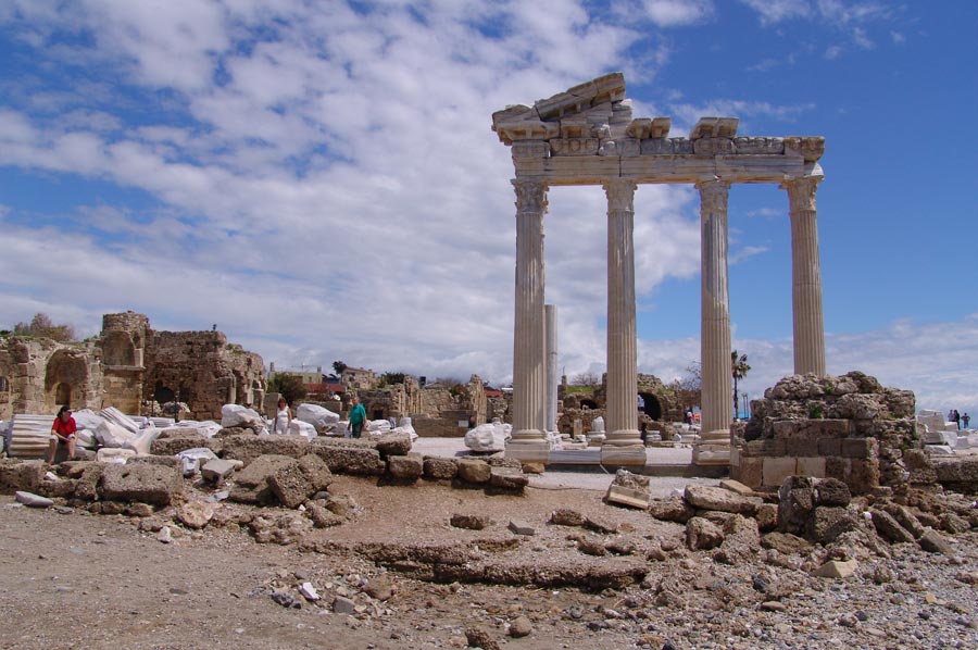 Antalya’dan Alanya istikametine giden karayolunun 72. km’sinden güneye dönen yol 6 km sonra günümüzün en tanınan turizm beldelerinden Side’ye sizi ulaştırmaktadır.