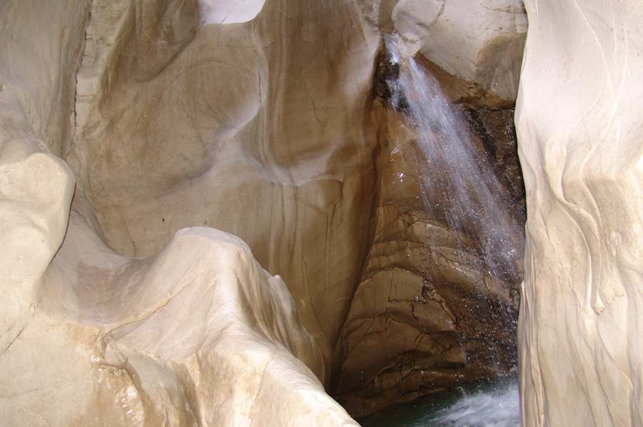 Dikey olarak uzanan ve yaklaşık 300 metreye kadar olan yüksek uçurumlar, seni bekliyor. Nehrin şiddetli su yüzeyi üzerinden kanyona çıkmak için kuvvetli tahta bir merdiven ve yaya köprüsünü kullanabilirsin.
