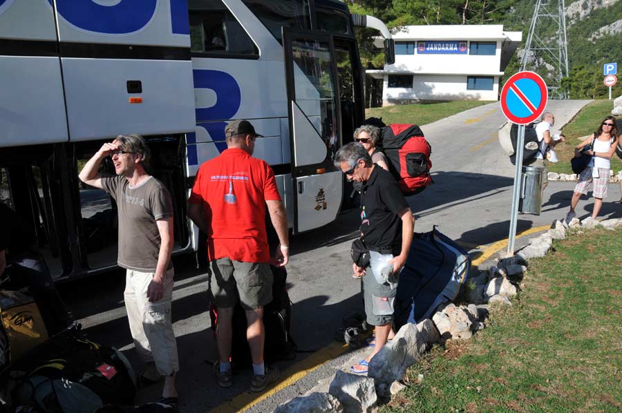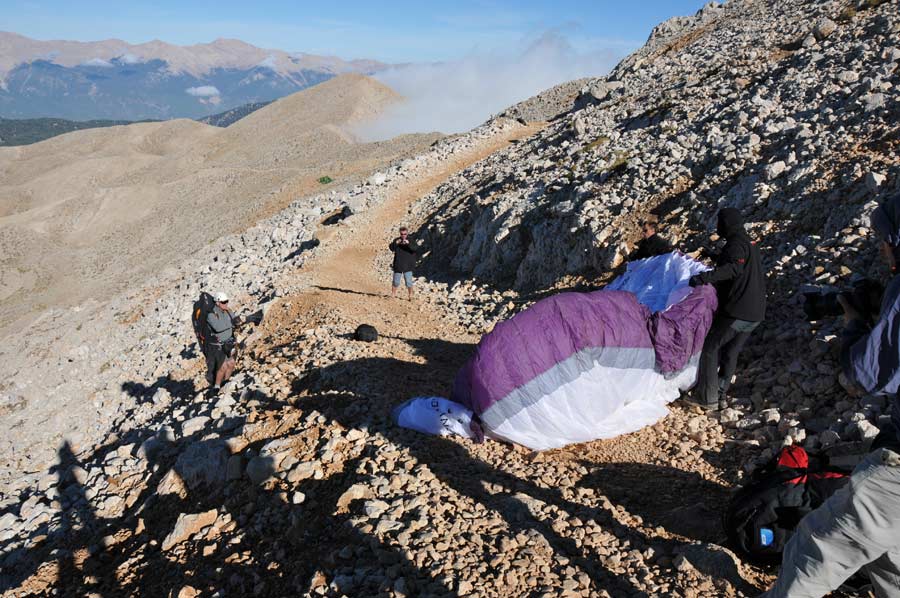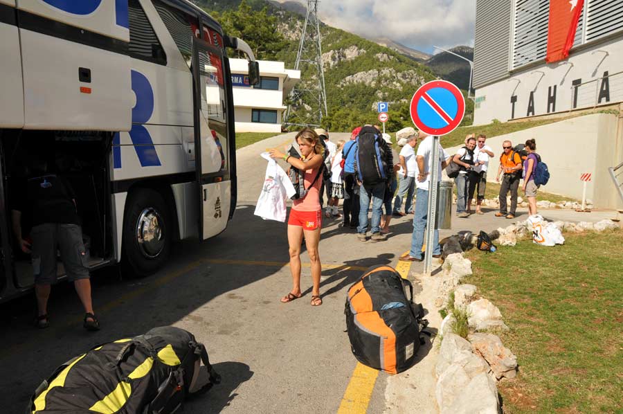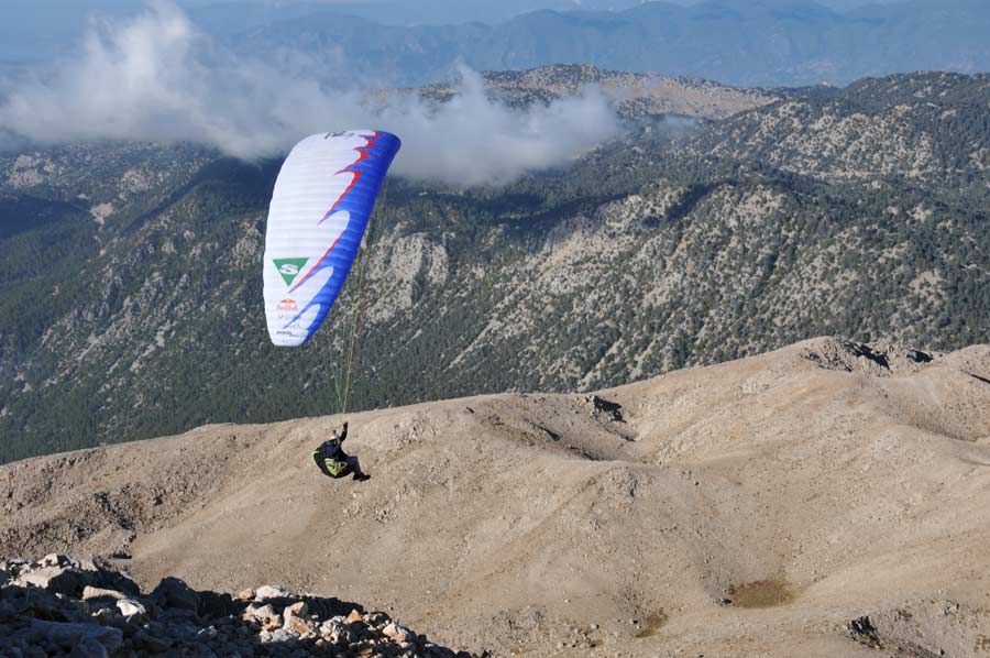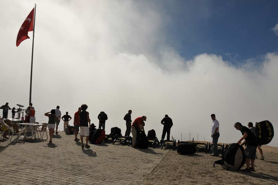 Pilotların kaldığı, Tekirova'daki otellere uğrayıp, onları Tahtalı'daki teleferiğin alt istasyonuna kadar götürecek olan servis otobüsü, bizi Cuma sabahının erken saatlerinde hiç gecikmeden topladı. Zirveyi örten bulutları daha aşağıdayken endişeyle gözlemledik. Karaman ve Beyşehir'deki dağların aksine Tahtalı'da, pilotlara yönelik önceden hazırlanmış olan ve baskın rüzgar yönüne göre seçilebilen kalkış noktaları yoktu. Zor ve üstelik tehlikeli de olabilecek bir girişimdi bu. Gerçekleştirilmesi, her pilotun kendi kapasitesine yönelik takdirine bağlıydı.