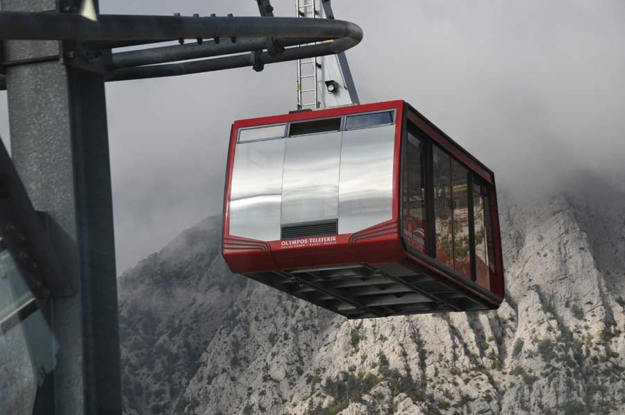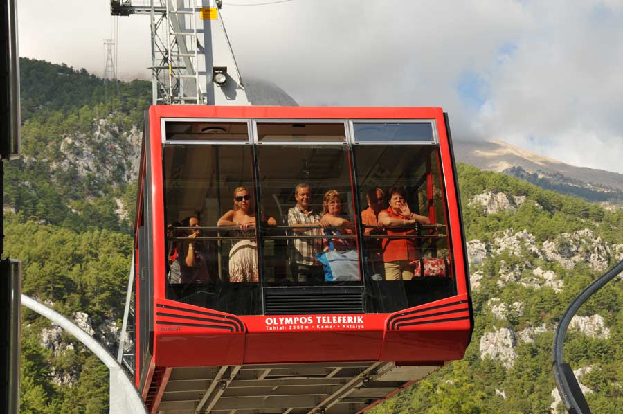 Manzaranın bir kısmını örten bulut örtüsüne rağmen, teleferik kabininin geniş pencerelerinden bulabildiğimiz görüş alanı nefes kesiciydi. Kıyı şeridinin bazı münferit kesimleri ve harikulade koylar, bu koylarda demirlemiş olan guletler ve koyu mavi renkli deniz görülebiliyordu. Tahtalı Dağı 2.365 metrelik etkileyici bir yükseklikte olup, Finike'ye ve Gömbe yakınlarındaki Uyluk Tepesi'ne (3.024 metre) kadar 360 derecelik bir manzara sunuyor. Hatta Kemer ve Antalya'ya kadar bile ulaşabiliyor insanın bakışı.