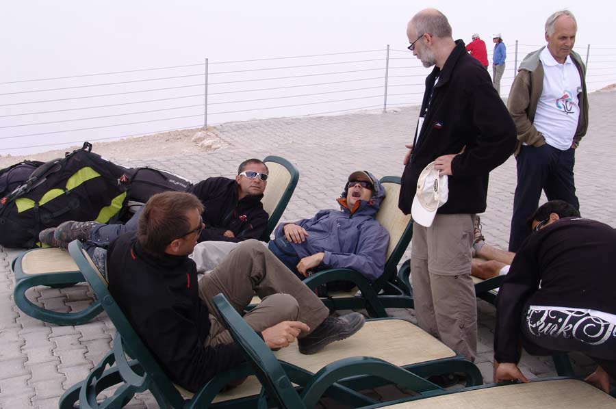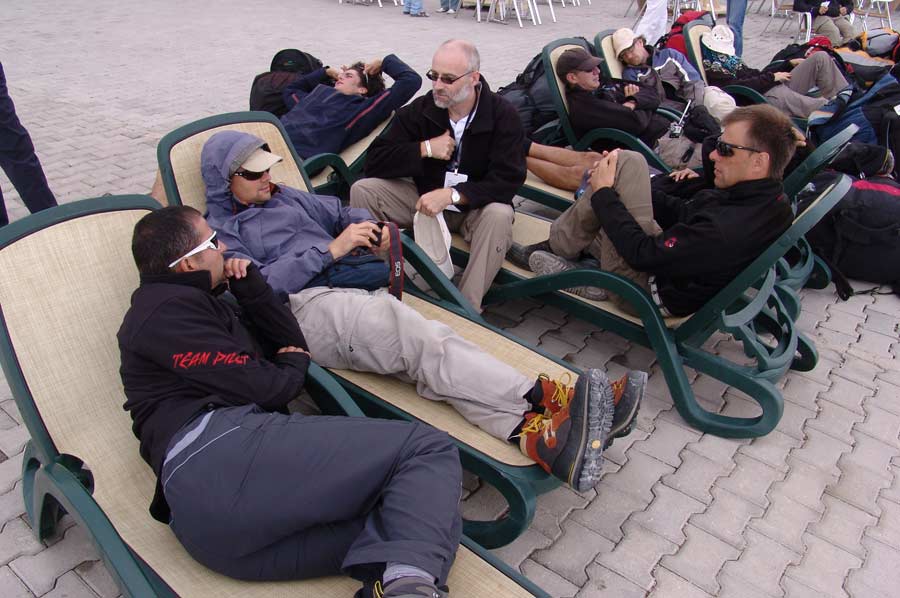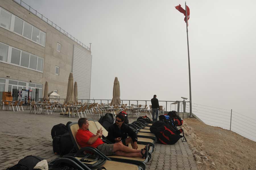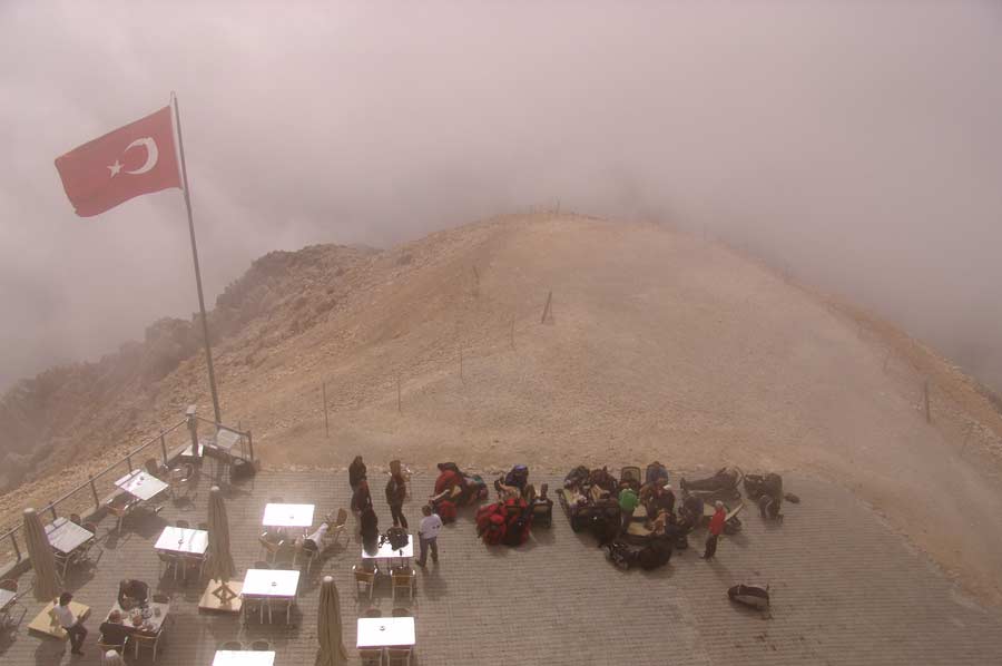 Zirveye ulaştıktan sonra endişelerimiz maalesef haklı çıktı, zira yoğun ve soğuk bir bulut cephesinin içinden geçtik. Bu cephe ancak ve ancak zirvenin hemen altında açılıyordu tekrar. Elbette pilotların hayal kırıklığı büyüktü, ama bulutların içinden uçmak yüksek, çok yüksek riskler içermekteydi ve bunları uzun yıllara dayanan deneyimlere sahip olunduğunda bile küçümsememek gerekiyordu. Uydu navigasyonunun devre dışı kalması sonucunda ölümcül neticeler oluşabilirdi, hatta pusula bile her zaman işe yaramıyordu. Bu sebeple Tahtalı’daki ilk günümüz sohbetle ve “bekle-çay iç” ilkesiyle sınırlı kalındı. Hem de kelimenin tam anlamıyla. Öğlene doğru durumda hâlâ iyileşme görülemediğinde, pilotlar yarın yani Cumartesi günü bir deneme daha yapmaya karar verdiler. Bu sefer sabahın daha erken saatlerinde gelecektik.