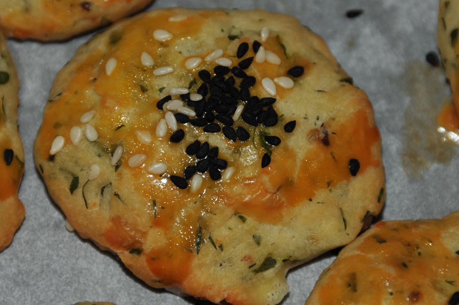 Öncelikle yıkayıp suyunu sırktığınız maydanoz ve dereotlarını incecik kıyın. İki su bardağı unu hamuru yoğuracağınız kabın içine kabartma tozu ile karıştırarak koyun ve ortasını havuz gibi açın. Havuz gibi açtığınız yere yumurtanın beyazı, margarin, sıvı yağ, yogurt, peynir, dereotu ve maydanozu ekleyerek yoğurmaya başlayın.